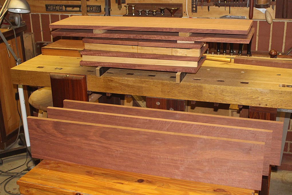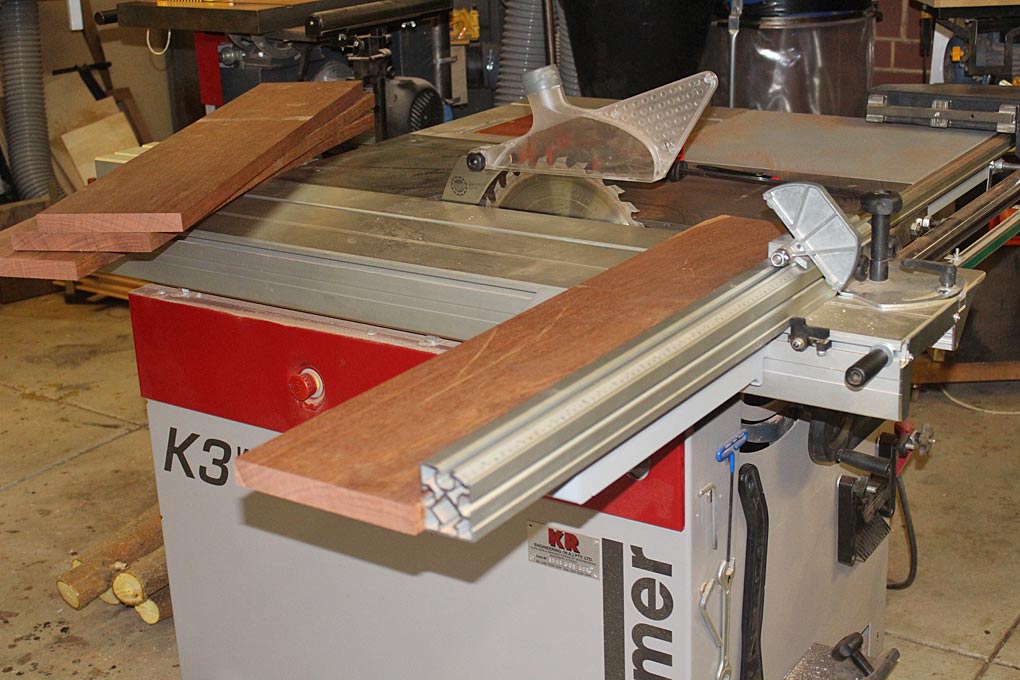 the prep by resawing some really nice Fiddleback Jarrah, which will