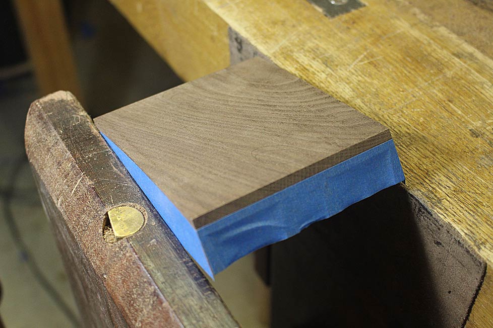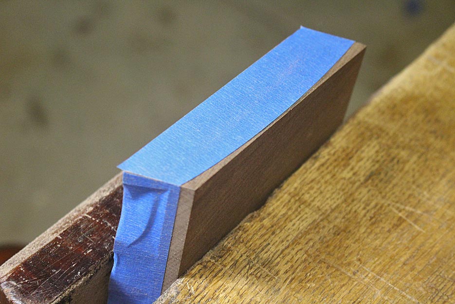 The tape is added to the upper and lower faces, and the template (from the drawer blade) is now used to mark the curve …