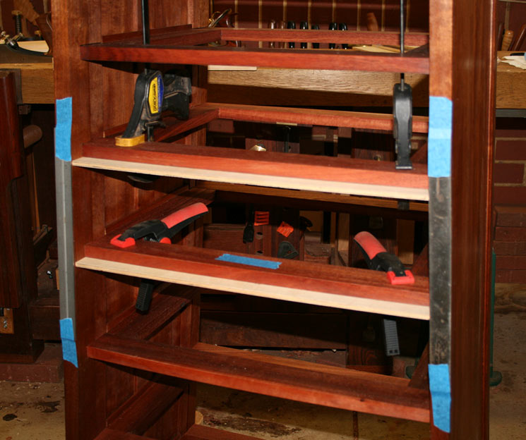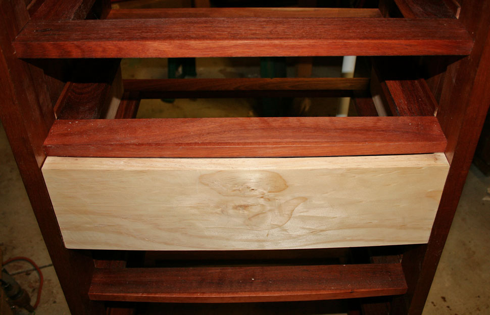 Next, the drawer front is sized to fit. I have chosen to practice on the fifth drawer (of the eight) as this will provide some insight into the difficulty in working the angles.