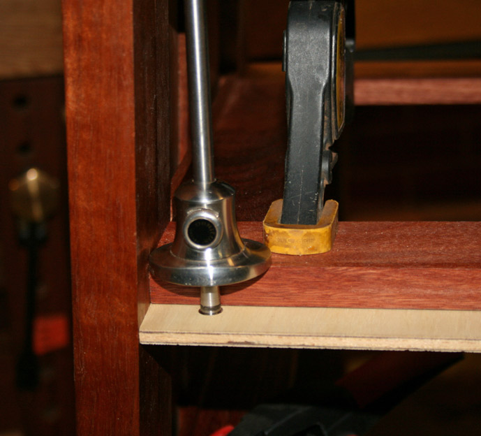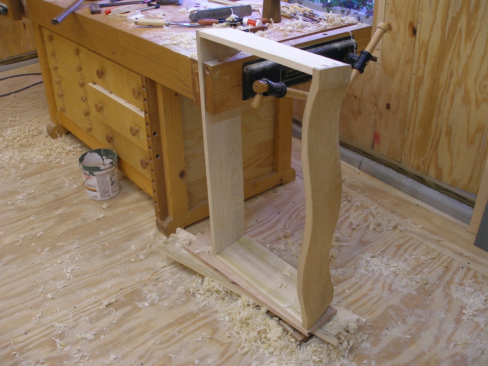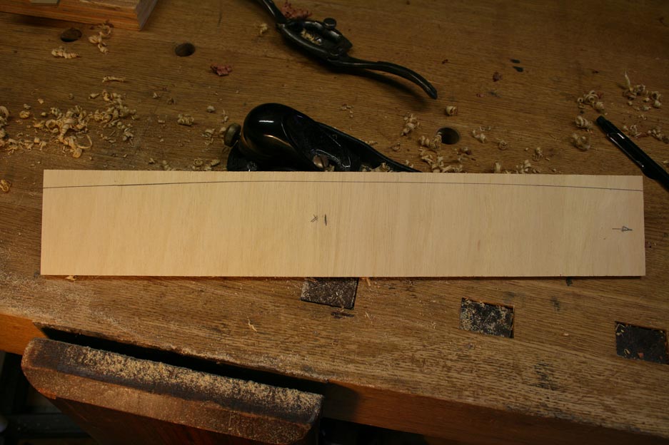 The outer curve of the bow drawer front will not be formed until later. It is retained to provide a reference for square.