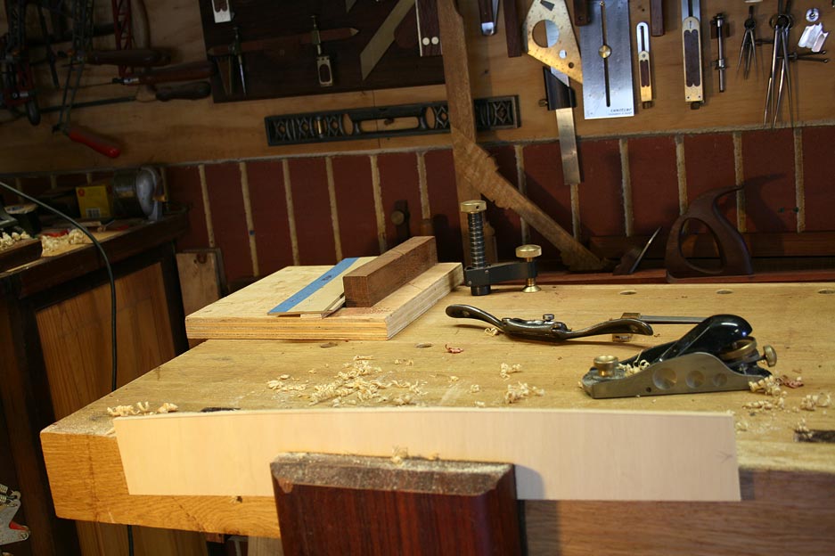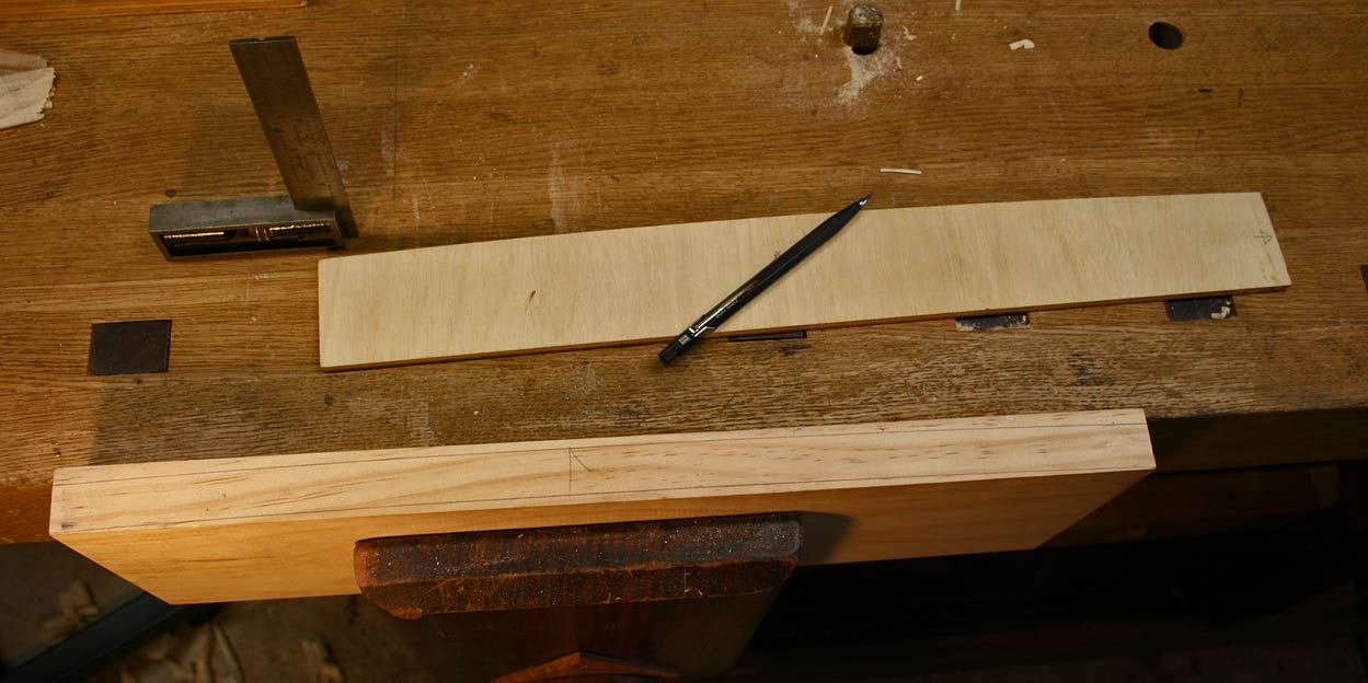 To obtain the angle for the taper, straight edges were taped to corners of the lower- and upper drawer blades.