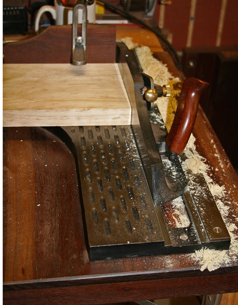 The inside of the drawer front needs to be shaped preparatory to sawing the dovetails.