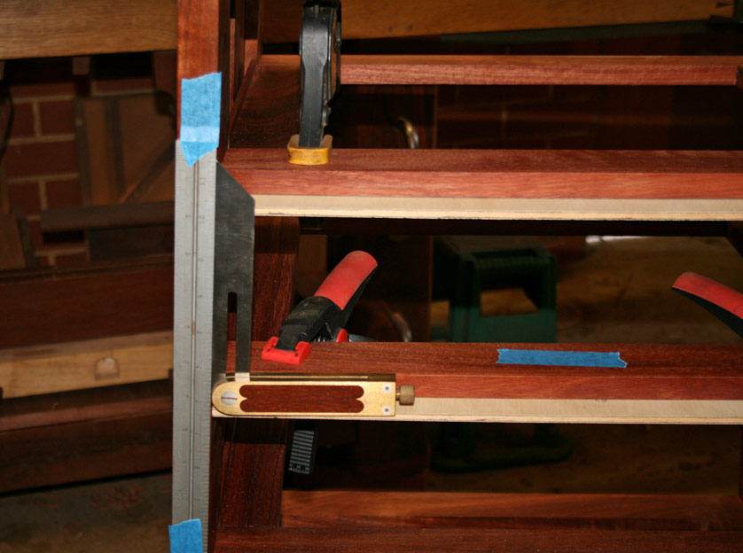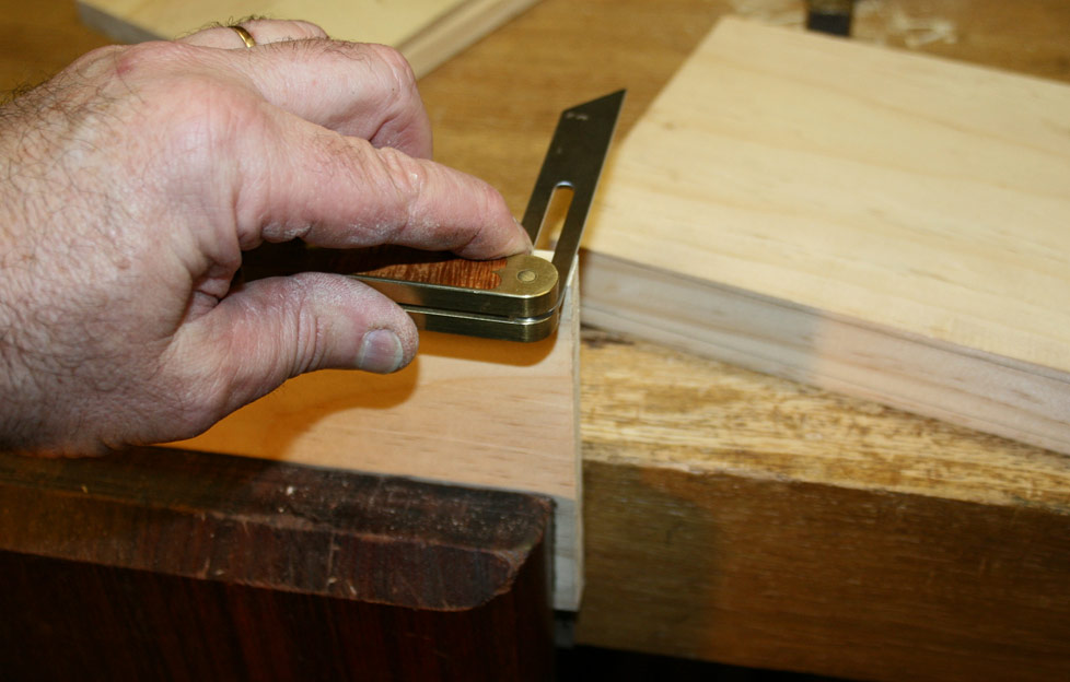 This angle is transferred to the drawers – all the dovetails will need to cut to this angle at their ends and baselines.