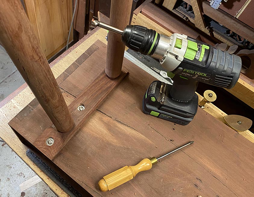 The process of attaching of the legs was completed by the addition of two screws in the sliding dovetail base.
