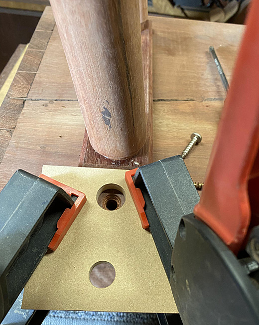MDF template was made to guide the forstner bit, as it had no support