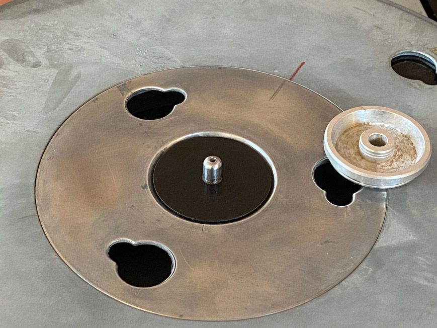 The spindle centre is filled with plasticine and an acrylic cover ...