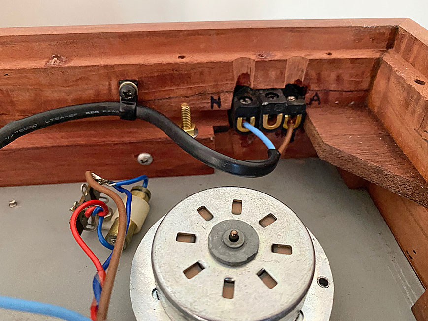 Similar to the RCAs, I had to remove and rotate the Furutech mains plug, as the locking screws tightened from above - which meant that the steel chassis would need to be removed if a wire came loose. The plug screw can now be tightened from below ...