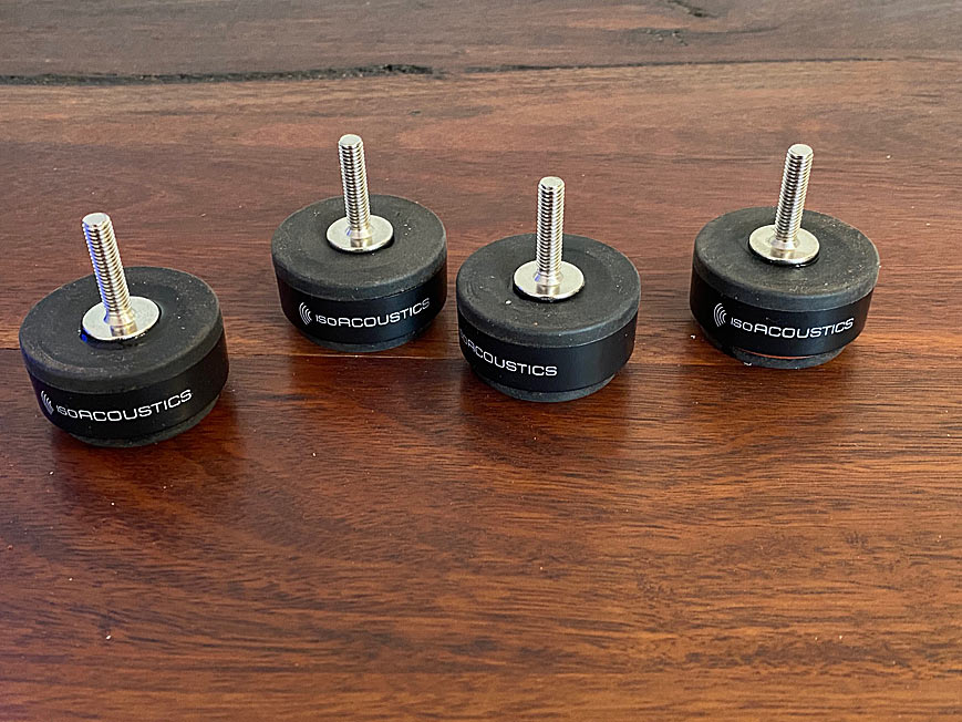 The feet are made from IsaAcoustic IsoPucks, which I modified by superglueing on stainless steel bolts to create feet with isolation properties and fine adjustment …