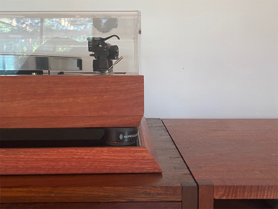 A great deal of attention has been given to reducing possible vibration to a minimum. One of my concerns was that the turntable was to sit on a chest of drawers, and this may act as a sound board. The floors are Jarrah-over-concrete, which helps.