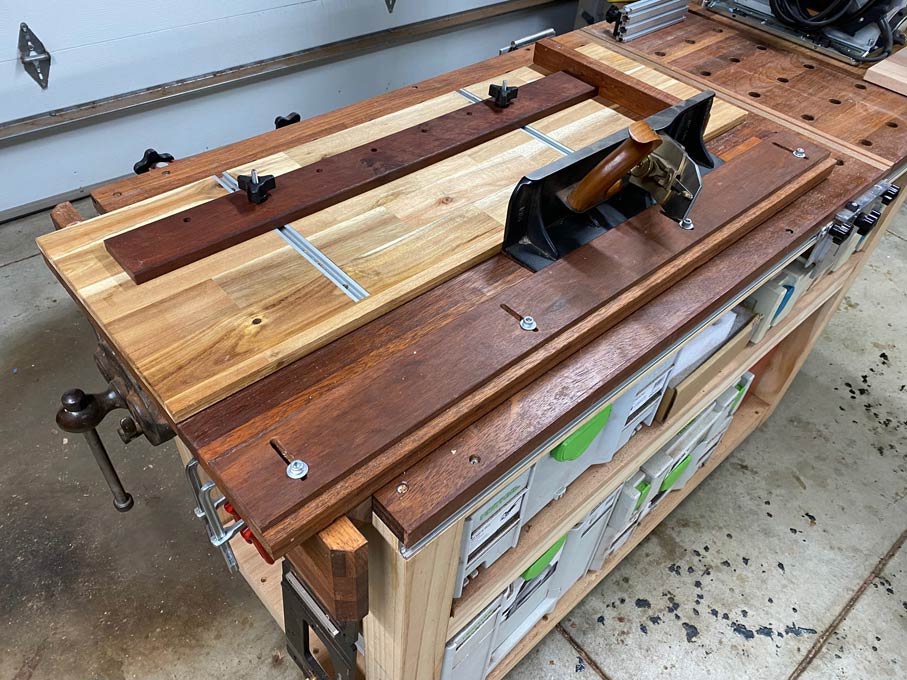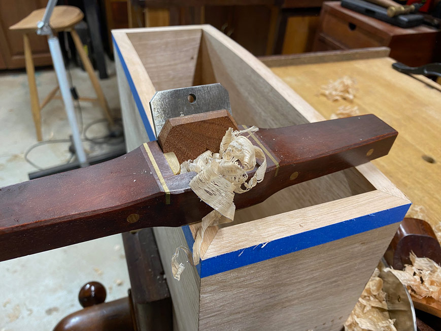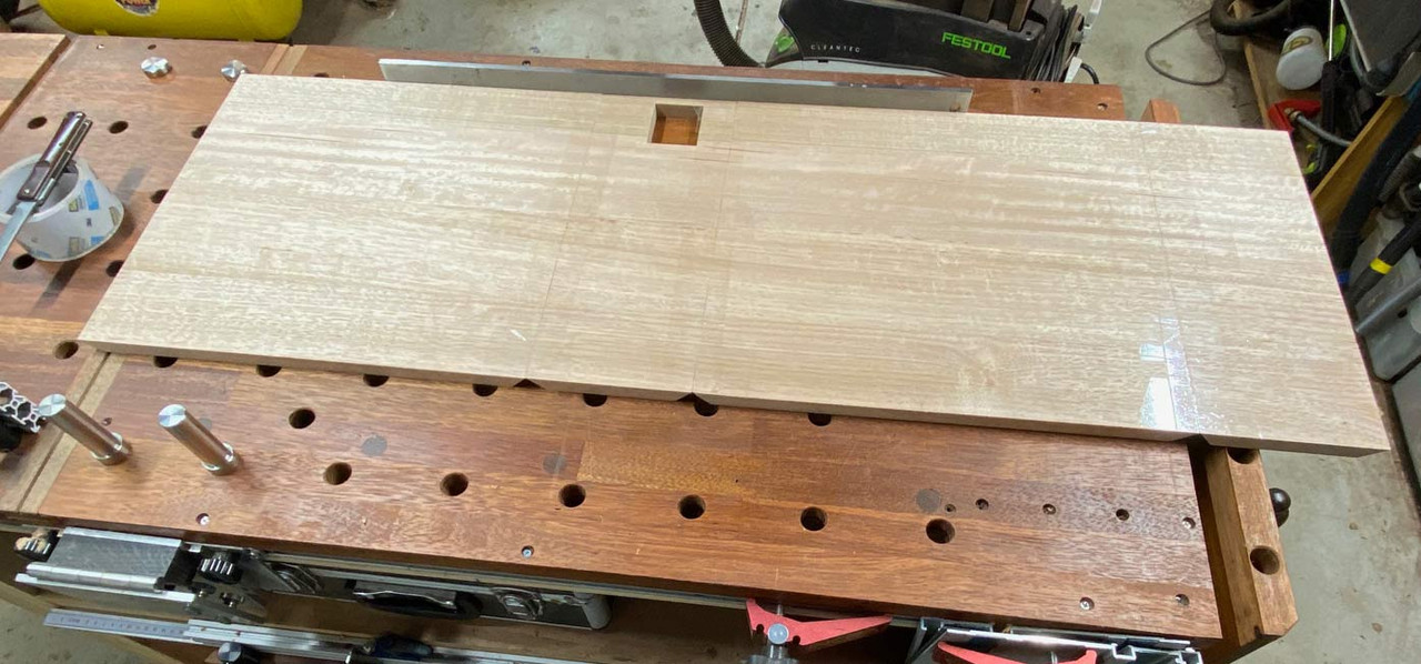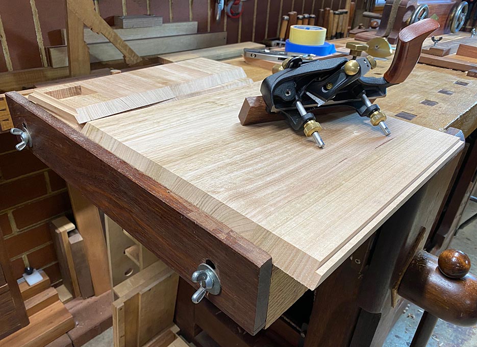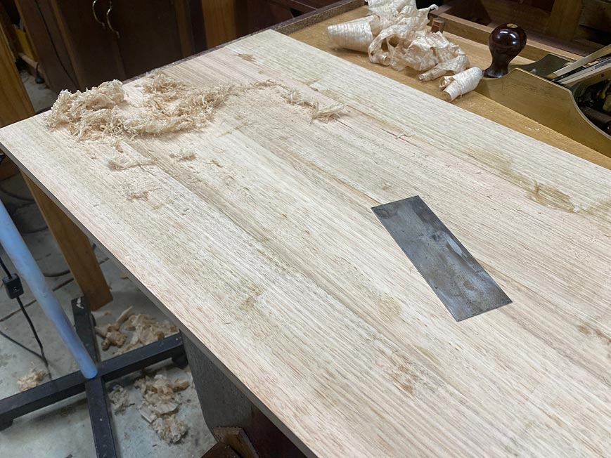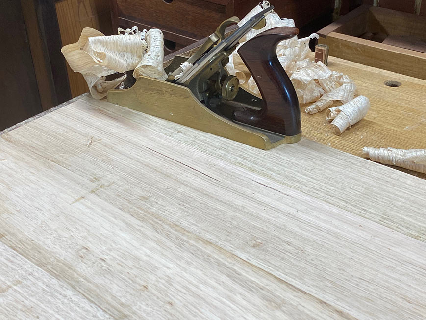 Smoothing the four-board panels with a LN #4 1/2 (the bronze