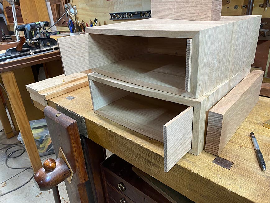 post is about preparing the drawer parts - sawing them to size, and