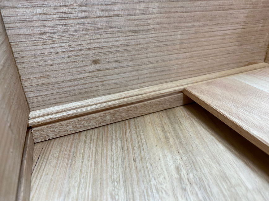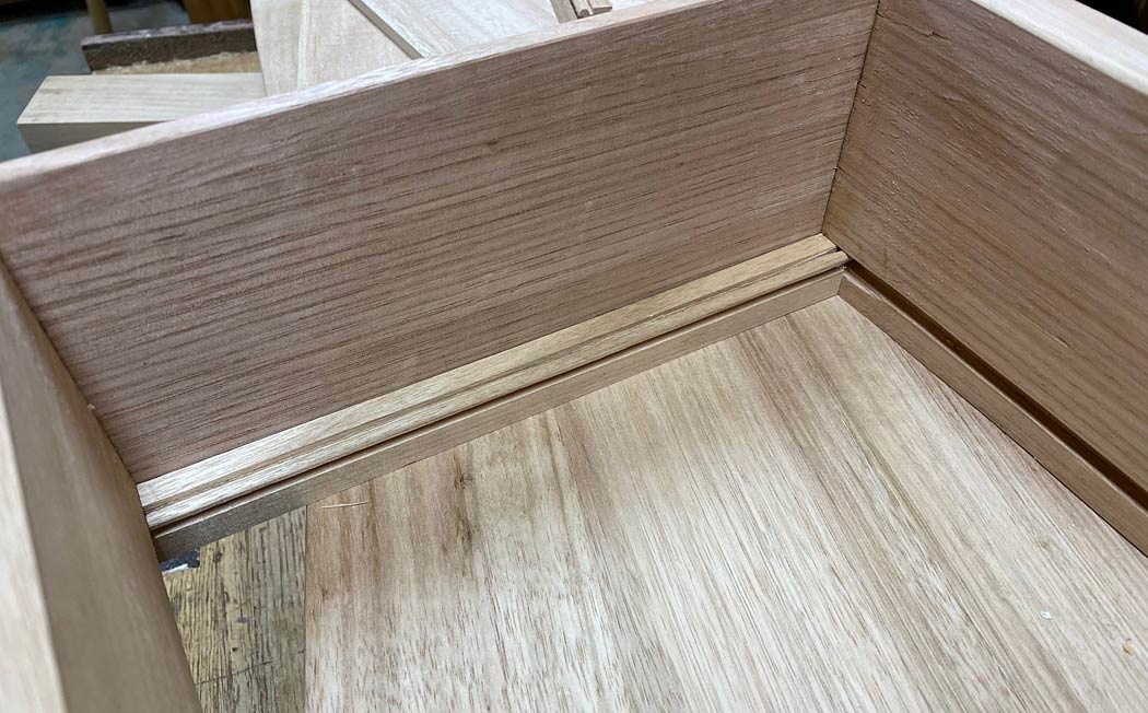 close up of the drawer bottom, rebate and bead ...