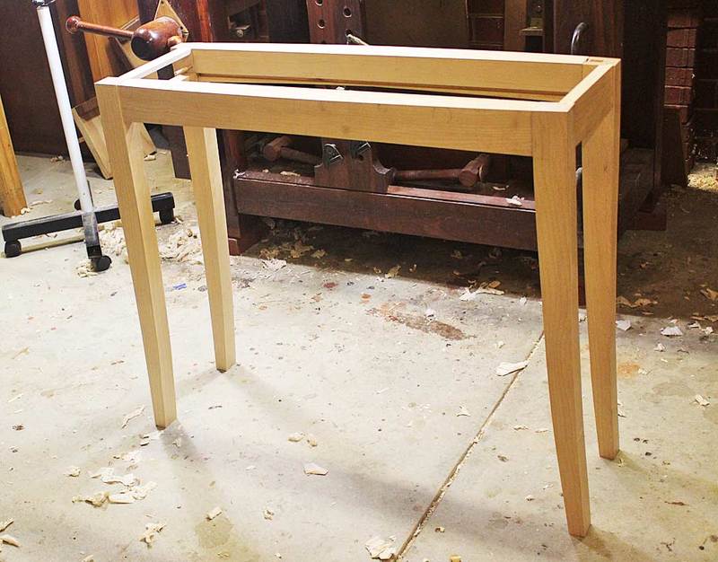 Finally, this is where I am up to with the sofa table. The front legs need to be rounded, and all the legs are yet to be tapered on the insides. There is clean up to do, a drawer to build, and the tabletop to resaw and shape.