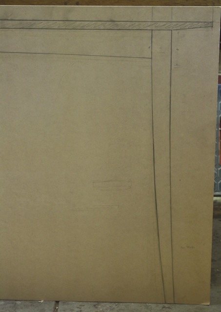 The legs curve 1” in all. The curve was plotted on a 3” wide MDF strip, and the top of the leg was 2” wide.