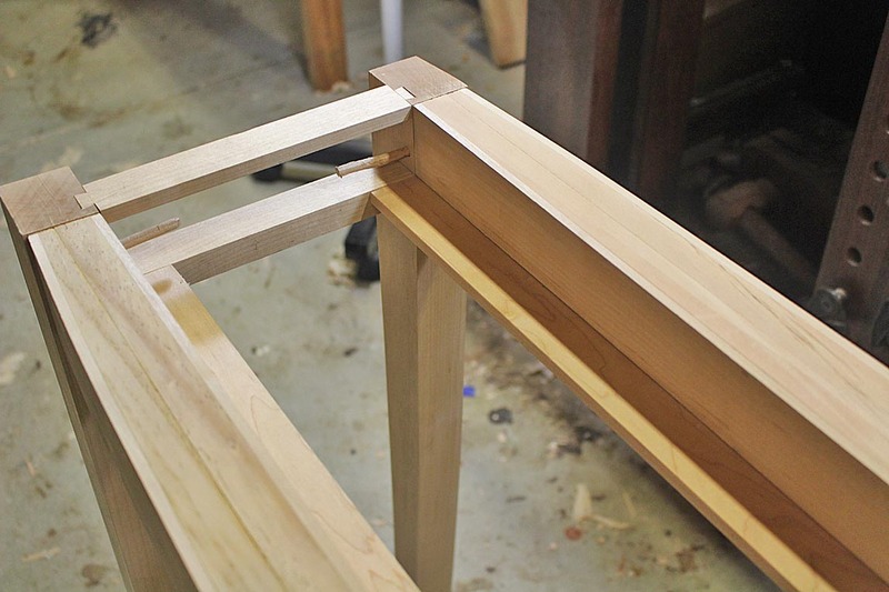 All is loosely fitted for these photos. Drawbore pegs lock the legs to the apron.