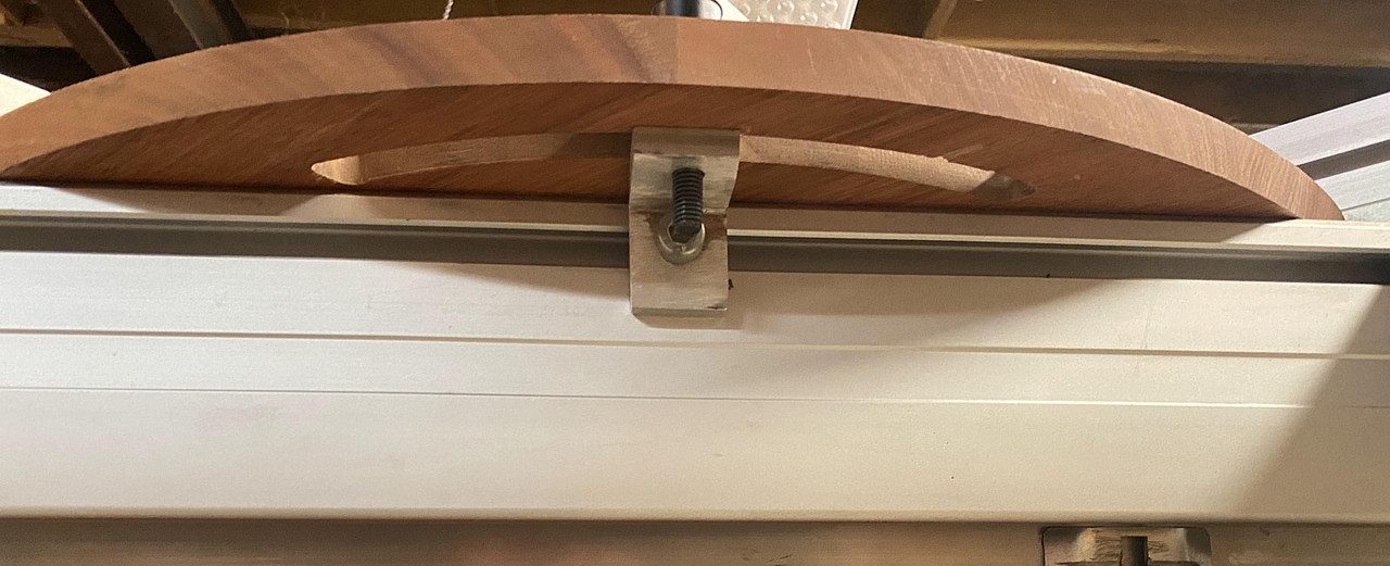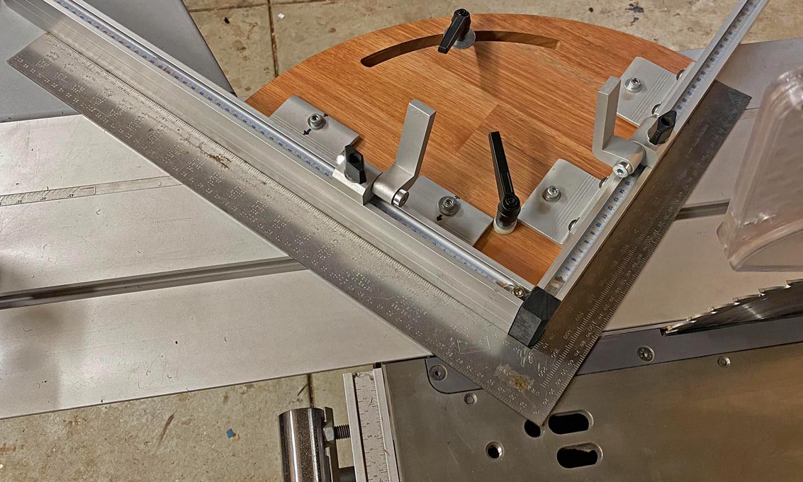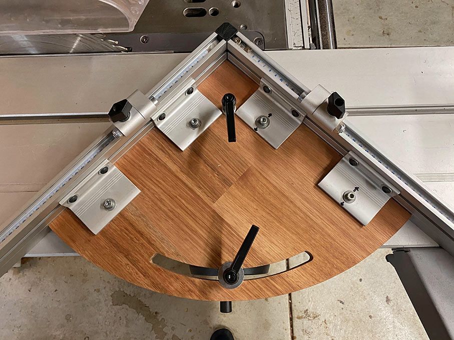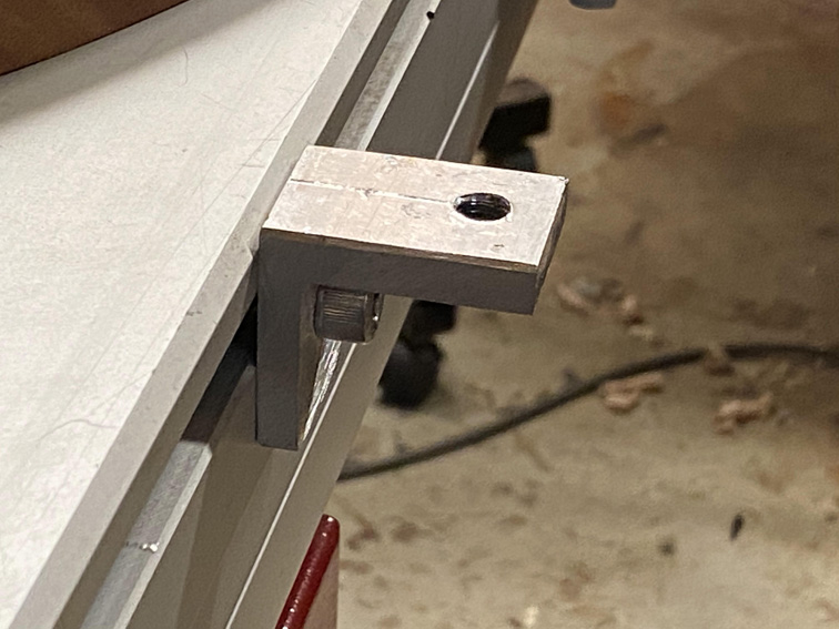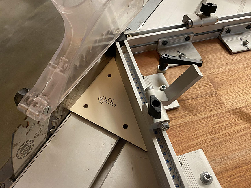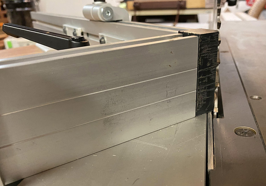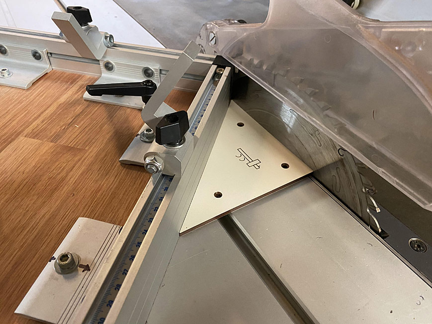 The end of the corner is made of UHMW. This is slightly over-long. When the fixture is fitted to the wagon, the corner extends slightly across the blade. The first slide of the fixture trims the corner into a zero clearance end. This enables exact cuts to be determined.