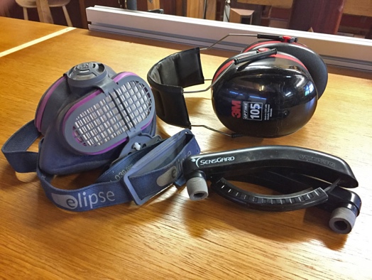 My preferred earmuffs are the 3M Peltor, which lower the sound levels by 30dB. I have a couple of pairs at each end of the workshop.