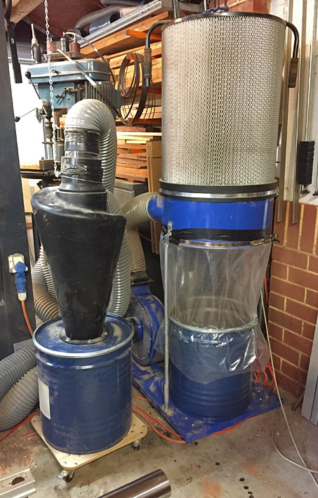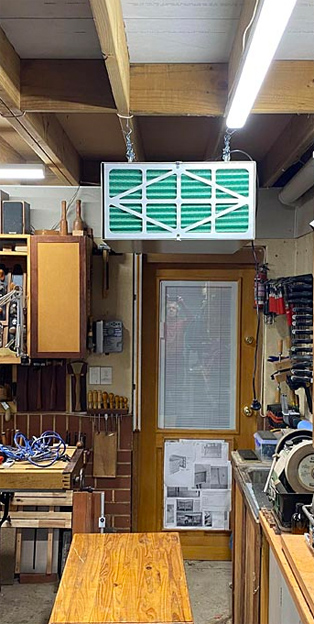 My current dust control is supplemented with a 1/3 h.p. HAFCO overhead air cleaner, (and by opening the garage doors and blowing out the dust).