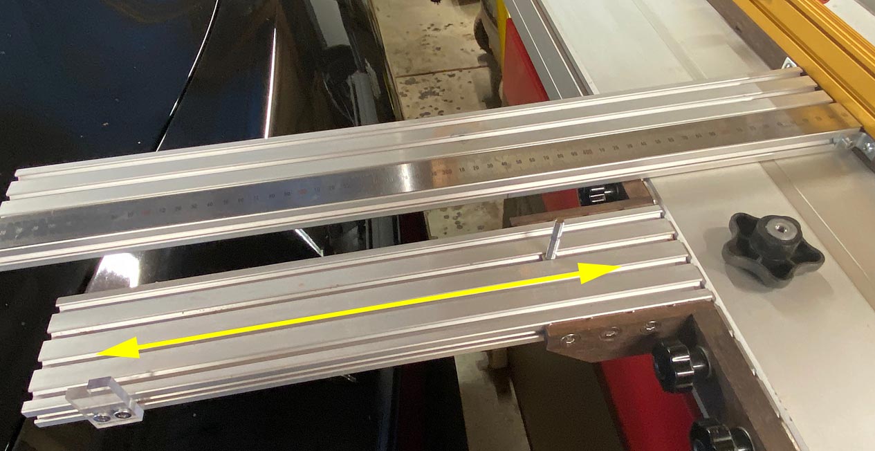 is a total of 610mm width of cut when ripping. The scale on the upper