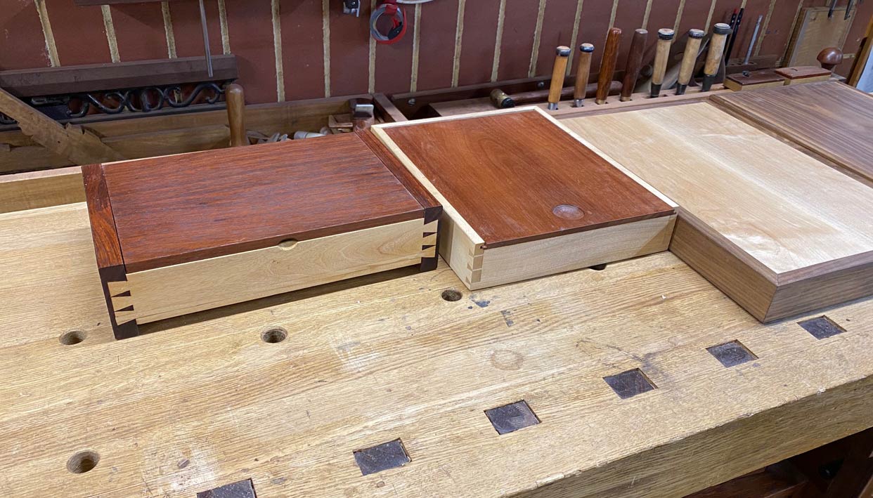 On my return from the workshop, I decided to build a few more boxes. Each would be able to be offered as an example of design options.