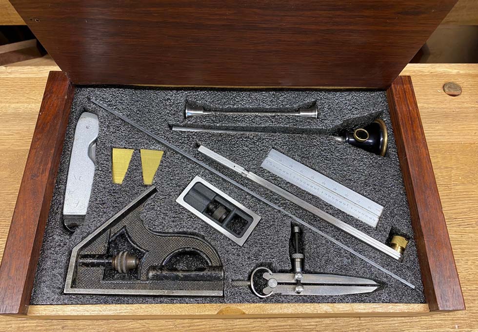 4"/100mm double square, dividers, marking knife, sliding bevel,