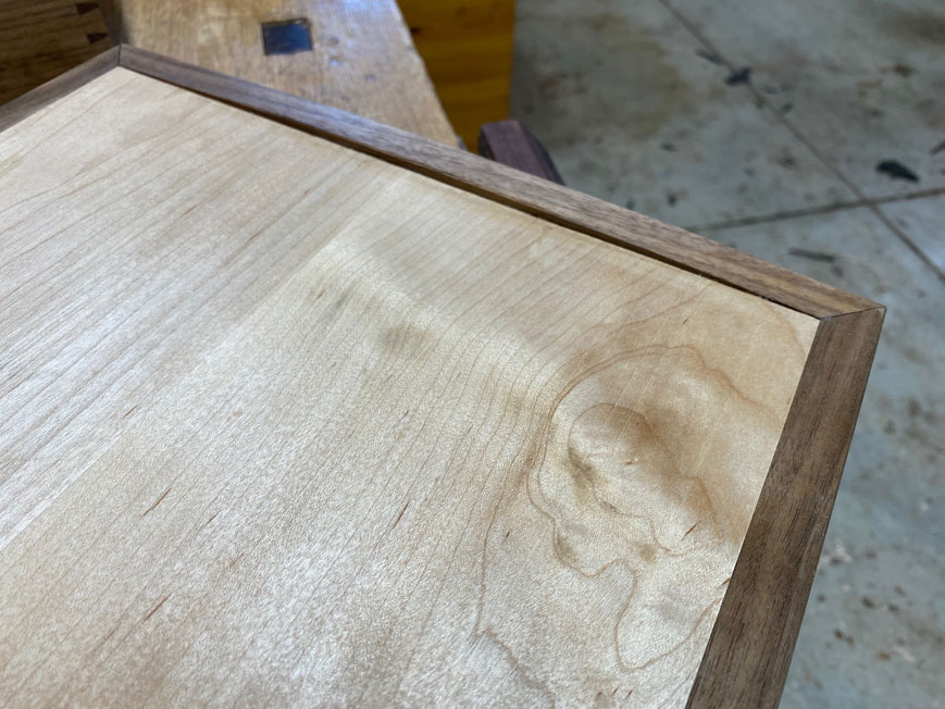 spline or reinforcing. Instead, the end grain corners are sized and