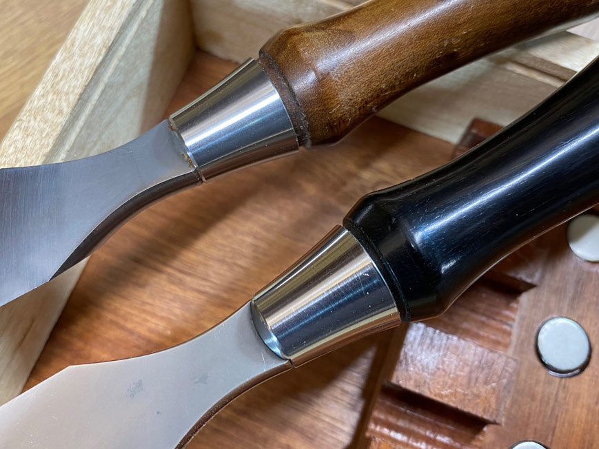 testing purposes. These have Bubinga handles. The 1/8" I sanded