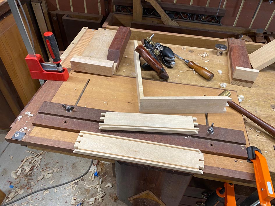 of this box is based on mitred-through-dovetails - all lower corners