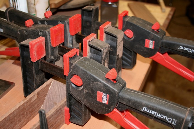 I glued up in two parts. First the heal section with the side pieces. Once this was dry I added the toe section. This made it easier to align the sections and to set the mouth to the size I wanted. For glue I have used Titebond III.