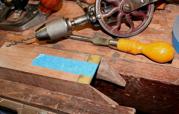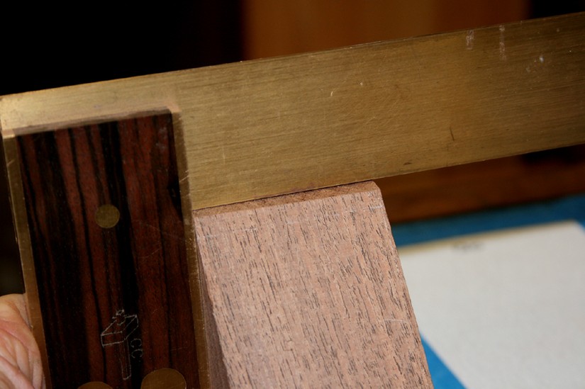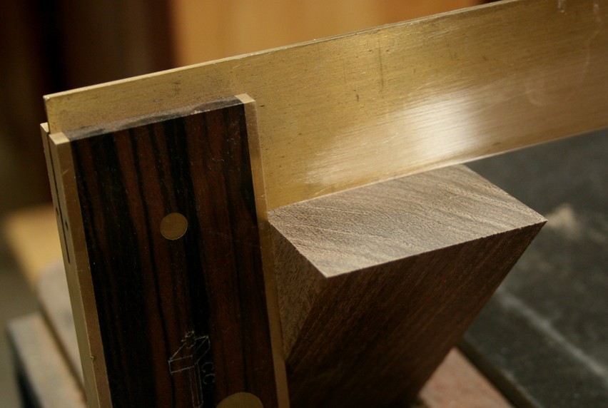 Here is a dry fit. The brass plate has been drilled for brass screws. The holes are finely chamfered.
