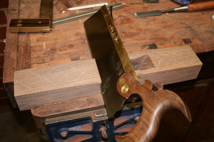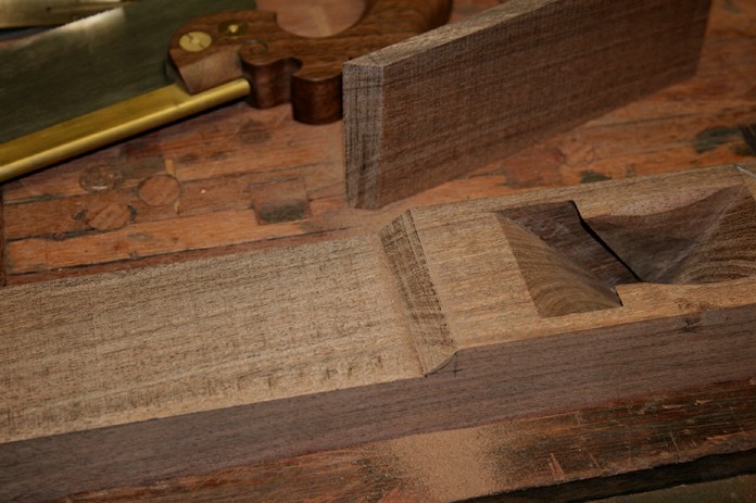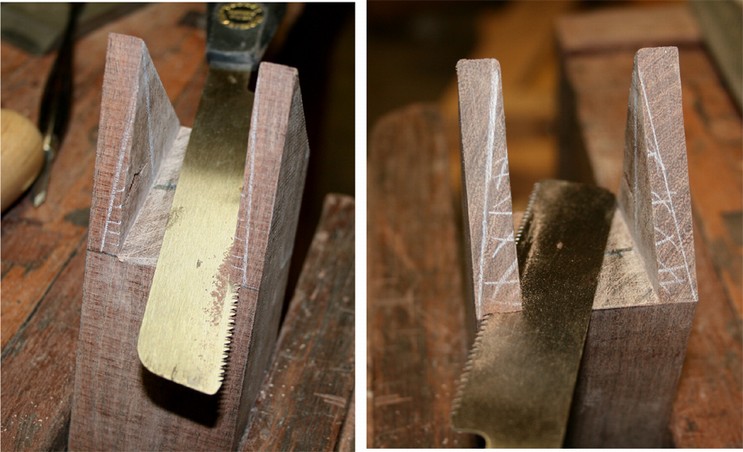 Using a narrow flush cut saw, I undercut the cheek waste.