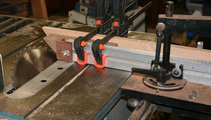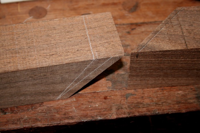I used the tablesaw to crosscut the cheek line (this is a 55° cut - 45° for the bed and 10° for the wedge).