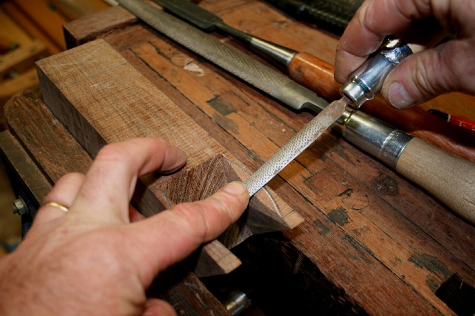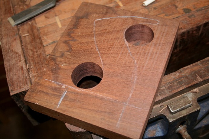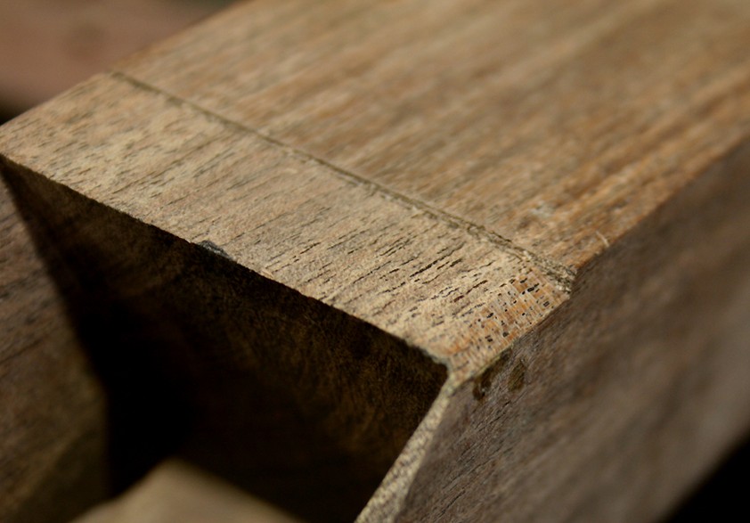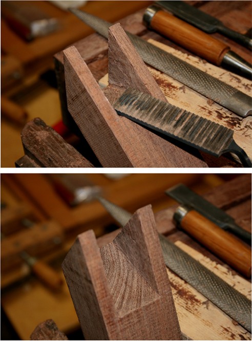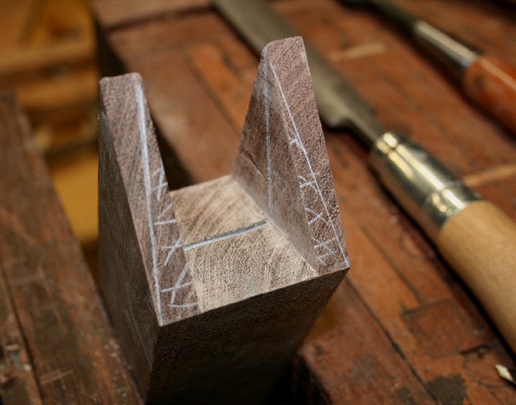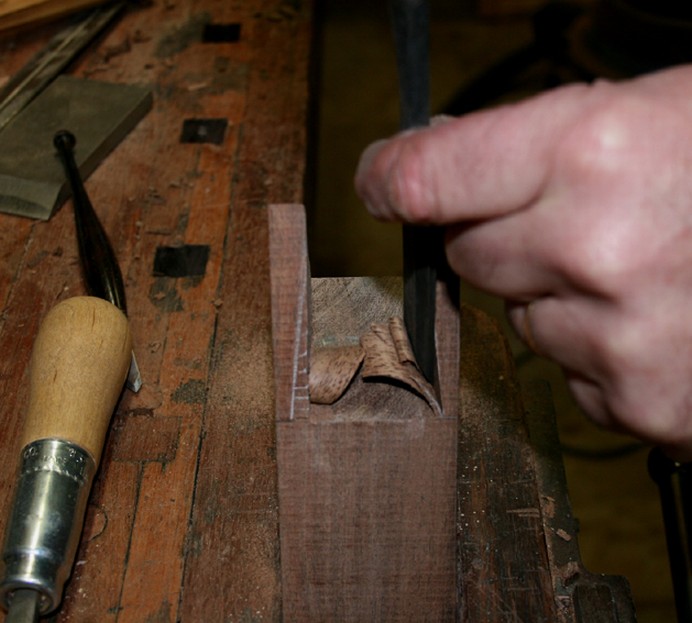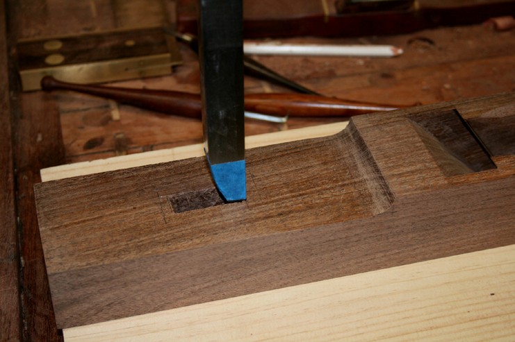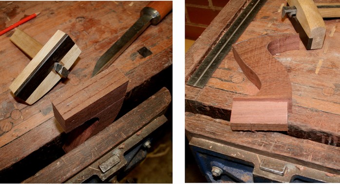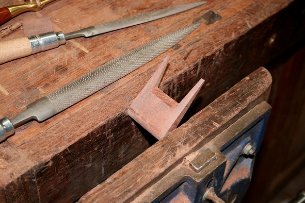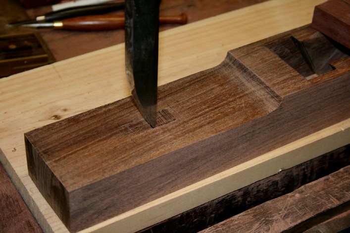 This is where all the hard work lies – shaping the throat and, later, the cheeks. You want the wedge to fit first time, to fit snugly. I am using Jarrah and this is hard – does not compress – so it must be accurate.