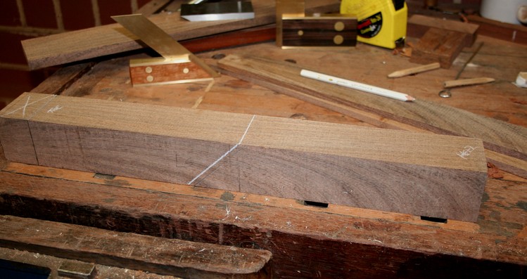 A year ago I received a selection of timbers from my Galootaclaus on the Oldtools List. A length of Ebony went to infill the Brese small smoother kit (and there is sufficient over to infill a St James Bay Thumb Plane kit). There is a block of Padauk. And there was this piece of Mesquite ...