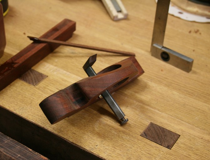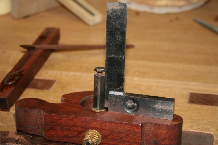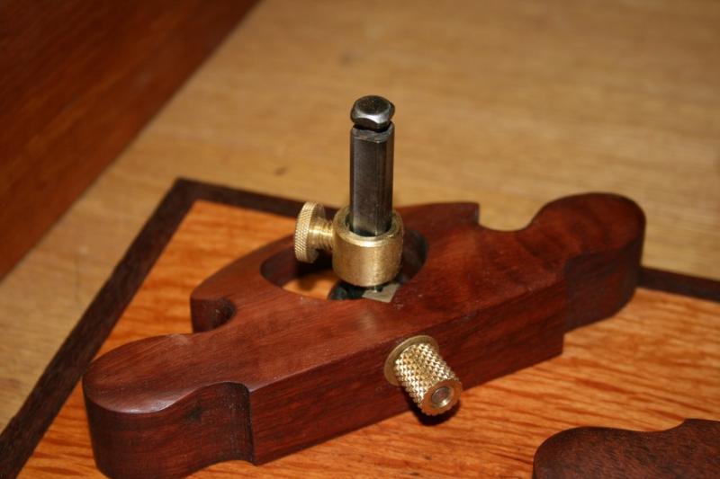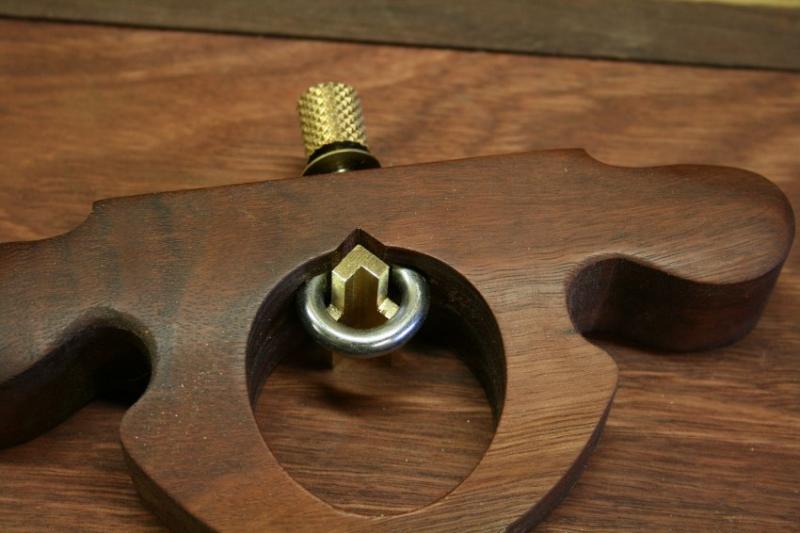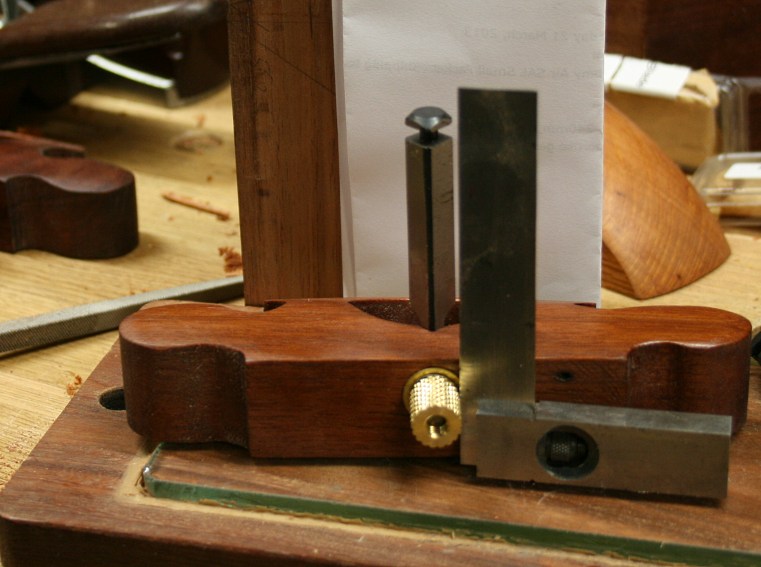 The blades and the small knurled screw are available from Lee Valley. The brass collar for the depth stop came off plumbing, which I cut and ground.