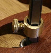 The final piece to build is the depth stop. This is simply a section of brass tube that fits snuggly around the shank of the iron. A thread is tapped into a wall for the knurled screw. Reduce the length of the screw for the ideal aesthetic.