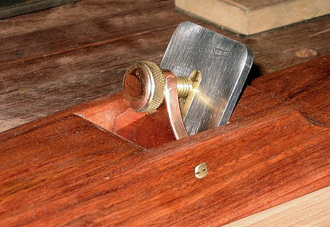 The mouth has a brass wear plate. It (the mouth) is very tight at present. I thought I would play with it like this first before opening it wider (as it is, I see this jointer taking fine shavings when truing edges of boards).