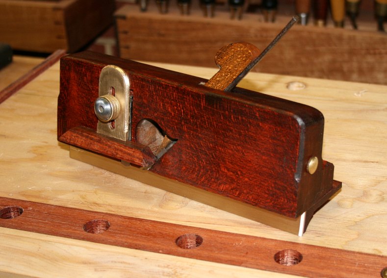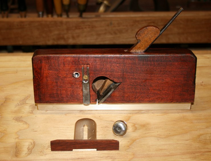 Shaping the sole also opened the mouth wider than desired and, as a result, a hardwood veneer was glued on. The mouth was reshaped and closed up to 2mm. This proved to be a good compromise between the ability to take a thick shaving and a clean one.