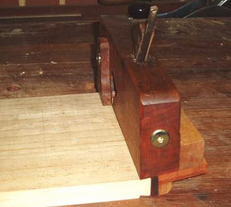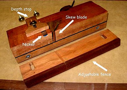 The nicker was constructed from a piece of ¼” chisel. The beveled end was rounded and set at the same depth as the blade.