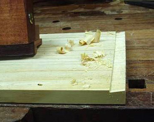 The first shavings with the plane were not successful. The sidewall of the dovetail was not cut clean and square (see below). At this stage of the plane’s development I had yet to add the nicker. I felt that would sort it out.
