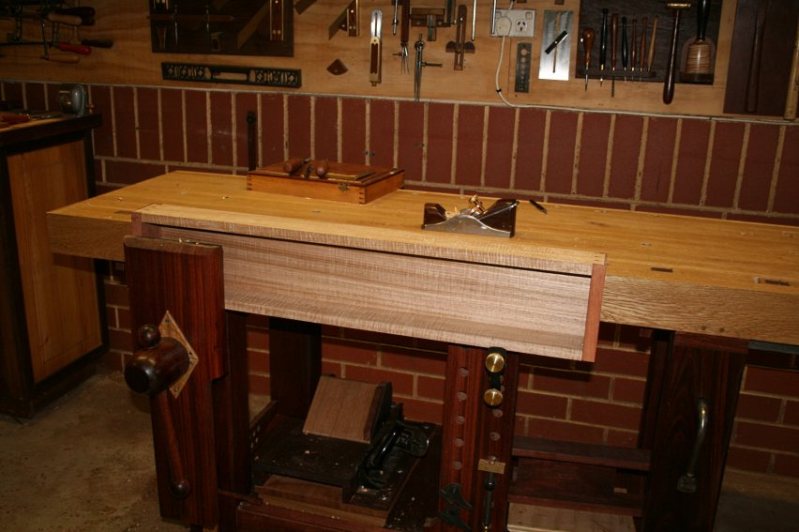 Finally, the sliding deadman, along with the new Veritas surface clamp, made it easy to hold the completed box for planing ..