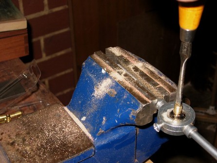 Step 9: Cut a slot at the end of the rod, then use this to screw the bar into the tap (i.e. thread cutter).