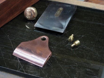 I have obtained much of my brass and bronze stock from salvage yards, and the material I chose was a piece of phosphor bronze, which has a pink colour similar to copper. All I can say is that you need to be a masochist to work this stuff, it is that hard! But it toned in well with the red tone of the Jarrah infills I used, so I persevered. In general, unlike this, the brass I have used is easy to cut and file.