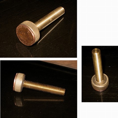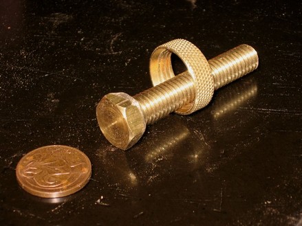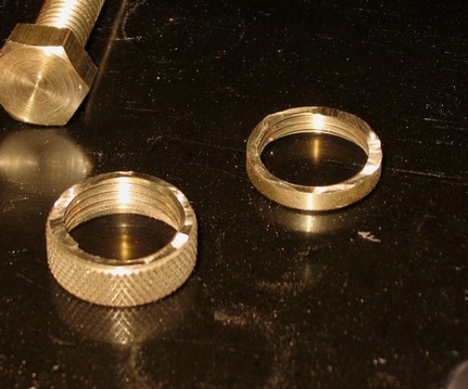 The ingredients for the lever cap screw are obtained from the garden section of your local hardware store (this being a hose connector for the knurled ring), a brass bolt of the desired thickness (for this you may need to seek out a specialist company that sells screws), a coin (I used an Australian $1 coin for the Spier cap screw as it is the same colour as brass, while here I used an Australian 2 cent coin to match the colour of the lever cap), and two-part epoxy.