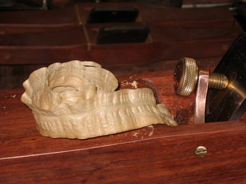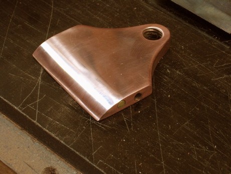 Step 6: Final shape. Note that this picture also shows the screw holes that were drilled and tapped (including a set that were mis-positioned!). Also note that the angle of the lower curve is quite shallow since the jointer has bed of 60 degrees and the lever cap also acts as a chip breaker. Keep it polished (completed as per the cap screw).