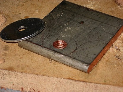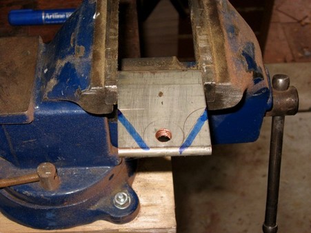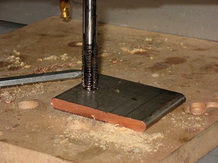 Step 2: Mark, drill, and then tap the hole for the cap screw. This is then centred on the brass plate (build the profile around the hole, rather than the other way around).