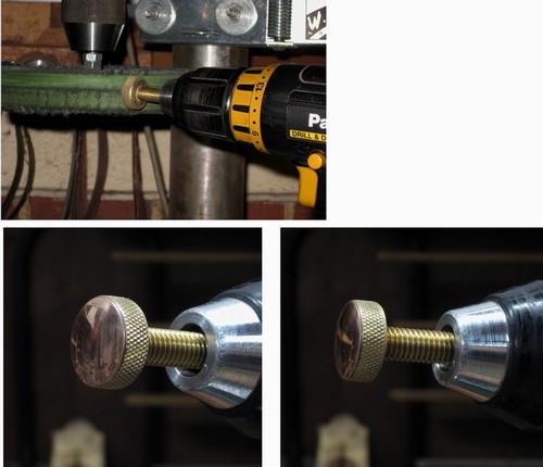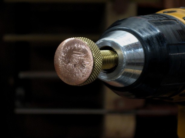 Step 10: Now move to a fine deburring wheel on the drill press. Again, spin both together.