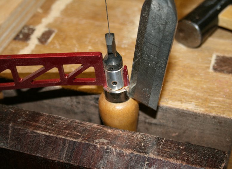The tang will seat in a tapered mortice. This will be created with a drill. Choose a drill bit that is the same thickness as the tang …