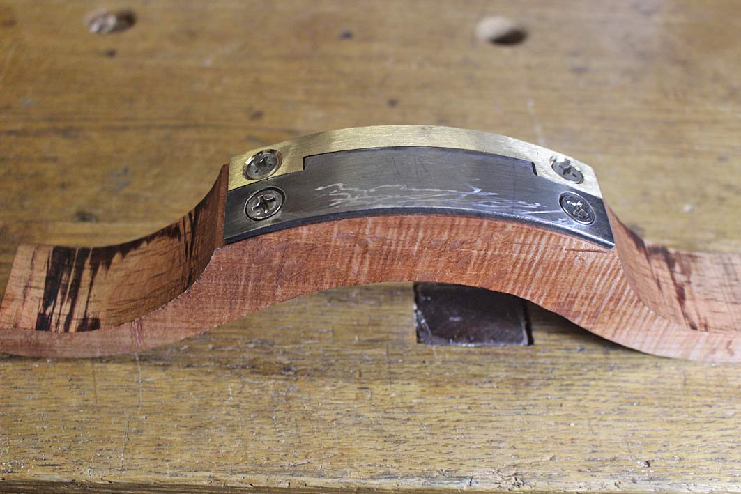 Fit the blade and a brass mouth (easy to bend cold) ...