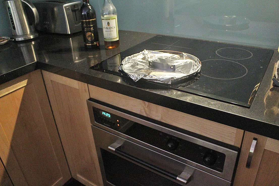 … cooled it in peanut oil, and then tempered in the kitchen oven.